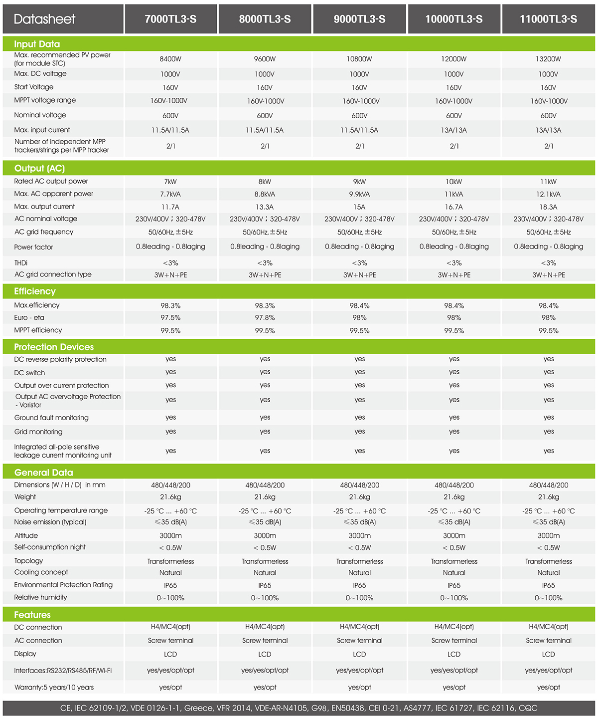 Biến Tần TL3-S ( 10Kw , 2 MPPT ) Và Thông Số Kỹ Thuật