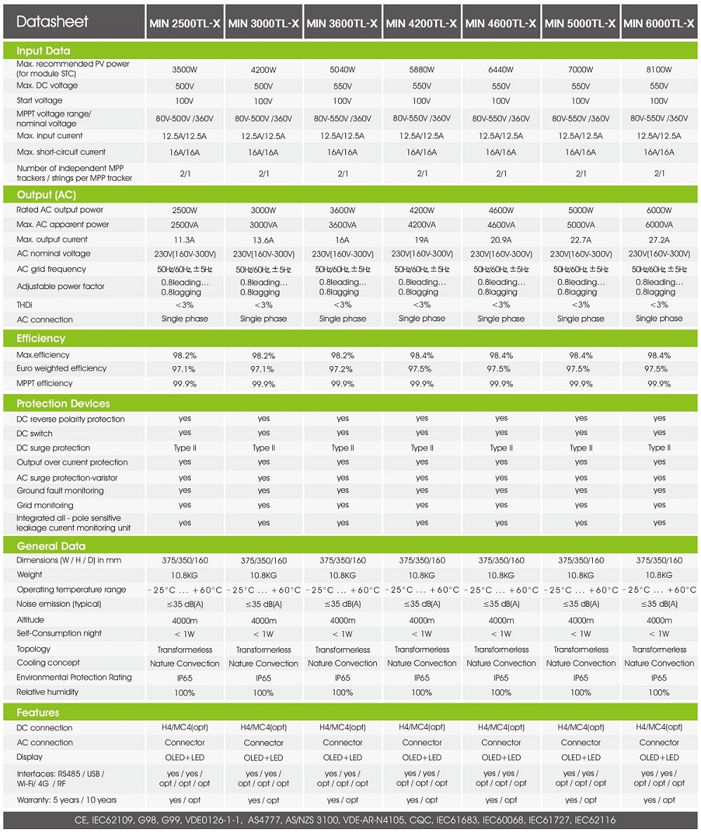 Growatt MIN 2500-6000TL-X / XH là giải pháp biến tần thông minh cập nhật nhất với tùy chọn sẵn sàng dùng pin (kiểu XH) cho hệ thống năng lượng mặt trời trên mái nhà. Đó là thiết kế nhỏ gọn và hiệu quả vượt trội lên tới 98,4%. Đó là TUYỆT VỜI HẤP DẪN!